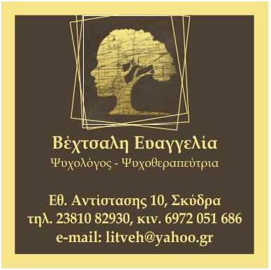 customer tabsΕπικοινωνίαΓνωστική-συμπεριφορική θεραπεία, θεραπεία σχημάτων, κρίσεις πανικού-φοβίες, αγχος, κατάθλιψη, συμβουλευτική ζεύγους, συμβουλευτική εφήβων-γονέων, διατροφικές διαταραχέςΣυνεδρίες και μέσω βιντεοκλήσης (Skype, Viber)ΨυχολόγοιΥγείαΕθνικής Αντιστάσεως 10, ΣκύδραΣΚΥΔΡΑ ΠΕΛΛΑΣΠΕΛΛΑΜΑΚΕΔΟΝΙΑ 2381082930 6972051686litveh@yahoo.gr Το προτείνω (έχει προταθεί 0 φορές) ΦωτογραφίεςFacebook LikeShare on FacebookTweet Widget